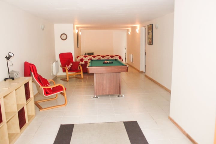The Gite is spread across two levels with a relaxing lounge and a large recreation room. It is located a short drive away from the region's top beaches and bustling towns like La Tranche sur Mer.